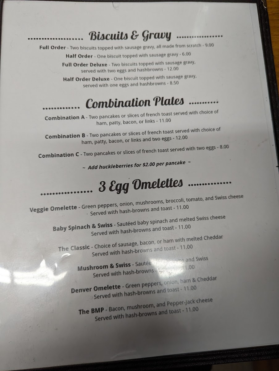 - Indulge in the huckleberry pancakes, touted as the best in the region, or savor the biscuits and gravy, which have garnered rave reviews.